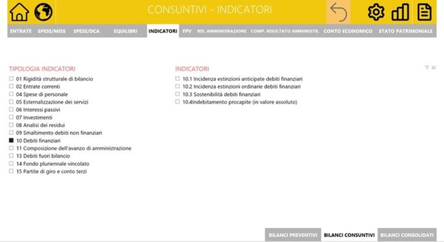Volendo conoscere il pro capite si può selezionare l'analisi "INDICATORI" e in particolare la voce 10.4-Indebitamento procapite :