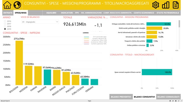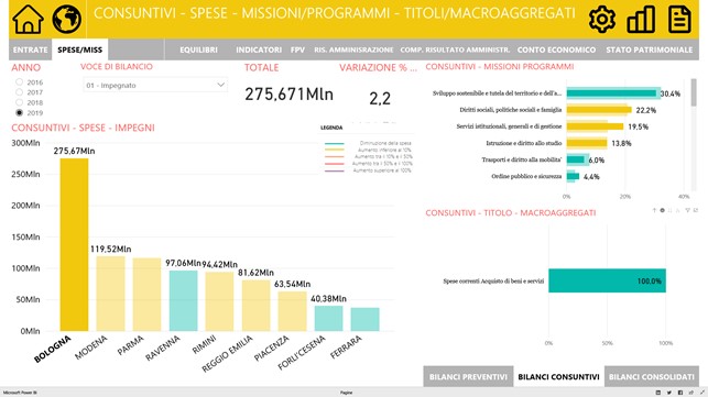 Una reportistica sviluppata con l'utilizzo della Business Intelligence a partire dai dati ottenuti dalla BDAP-Bilanci Armonizzati relativa agli Enti locali dell'Emilia Romagna.