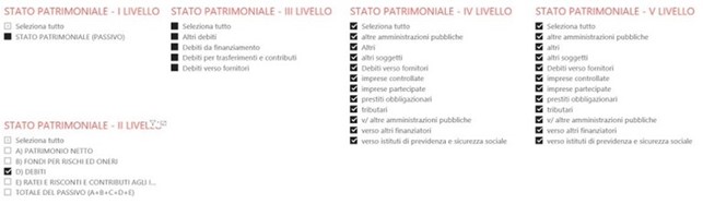 si può selezionare lo "Stato patrimoniale passivo", e al secondo livello i "Debiti".