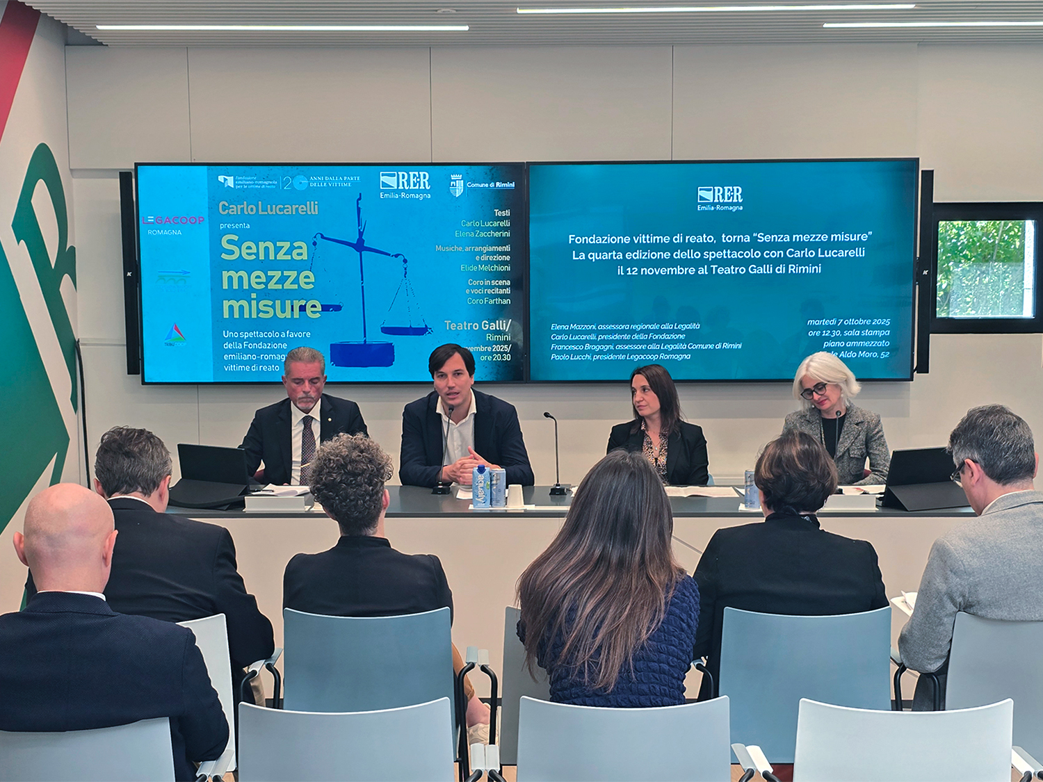 - l'assessora alla Legalità Elena Mazzoni alla presentazione della nuova edizione dello spettacolo della Fondazione regionale per le Vittime di reato "Senza mezze misure" (7 ottobre 2025)