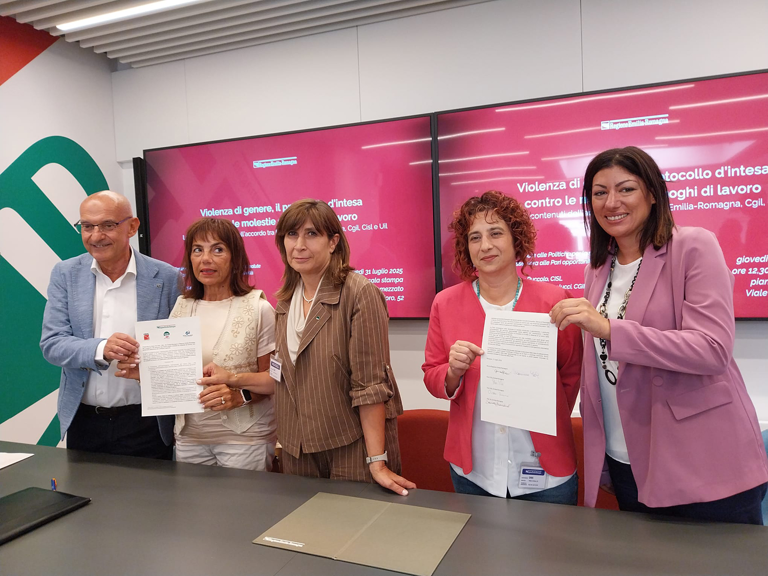 - l'assessore alla Sanità Massimo Fabi e l'assessora alla Cultura e Pari opportunità Gessica Allegni presentano l'accordo siglato da Regione e Sindacati contro le molestie nei luoghi di lavoro (31 luglio 2025)