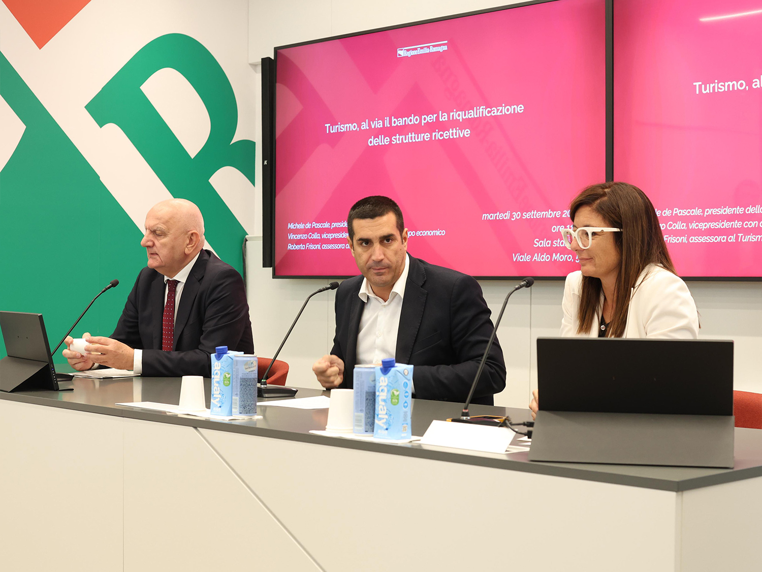 • il presidente Michele de Pascale, il vicepresidente con delega allo Sviluppo economico Vincenzo Colla e l’assessora al Turismo e Commercio Roberta Frisoni presentano il piano per la riqualificazione delle strutture ricettive (30 ottobre 2025)