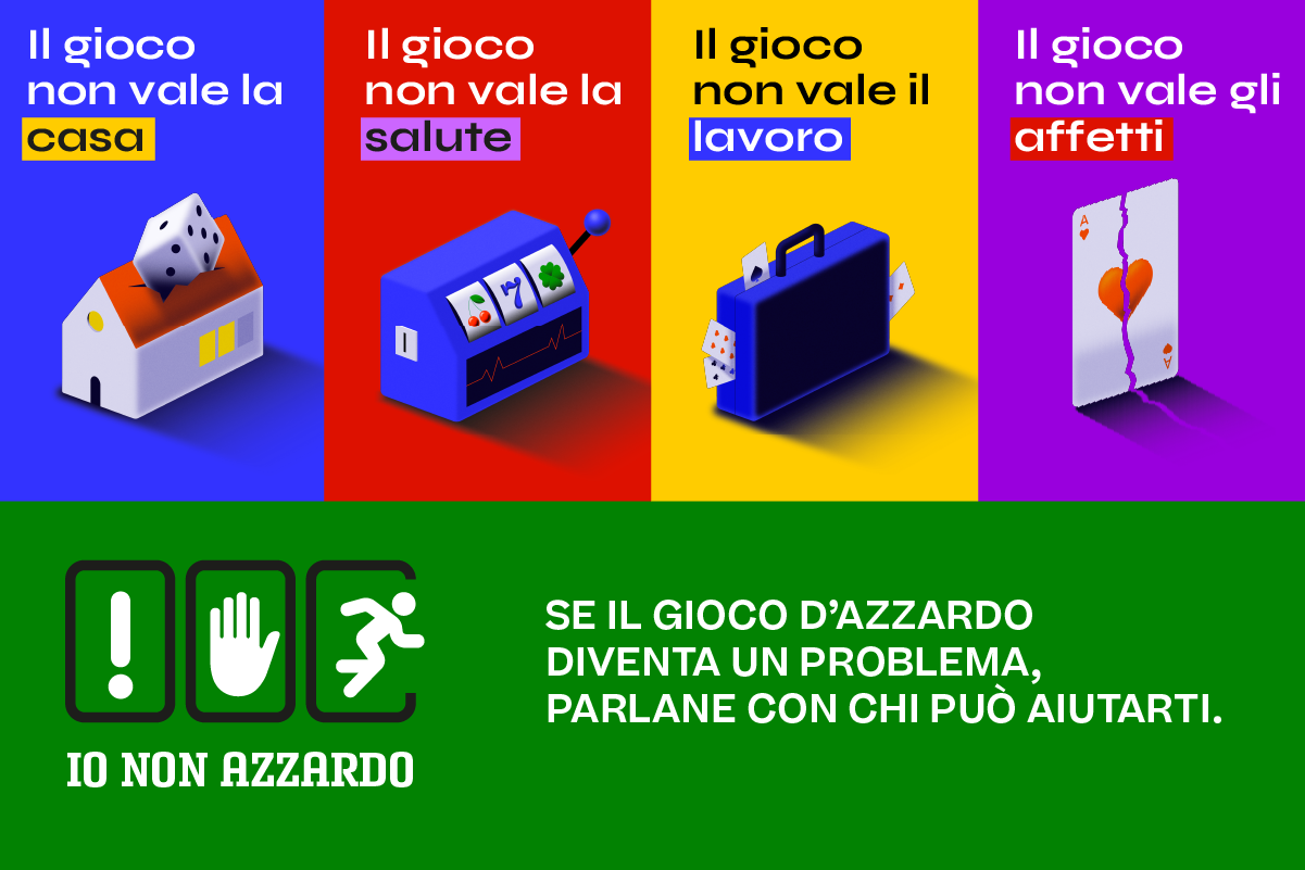"Io non azzardo", perché "il gioco non vale la casa, la salute, il lavoro, gli affetti": un concetto che è più di un invito, quasi un allarme sulla posta in gioco quando il gioco, appunto, può far perdere tutto. Per cercare di prevenire e contrastare il gioco d'azzardo patologico, la campagna - che usa toni leggeri e non giudicanti per favorire un approccio stimolante e dialogante - fa leva sui temi della perdita e delle probabilità statistiche, ma anche sulle emozioni. Che si tratti di casinò, slot machine, lotterie istantanee o scommesse online, il "banco" è programmato per vincere: a rimetterci sono sempre i giocatori. E le loro storie di uomini, donne, familiari e giovani sempre più coinvolti nel fenomeno, specialmente online.
