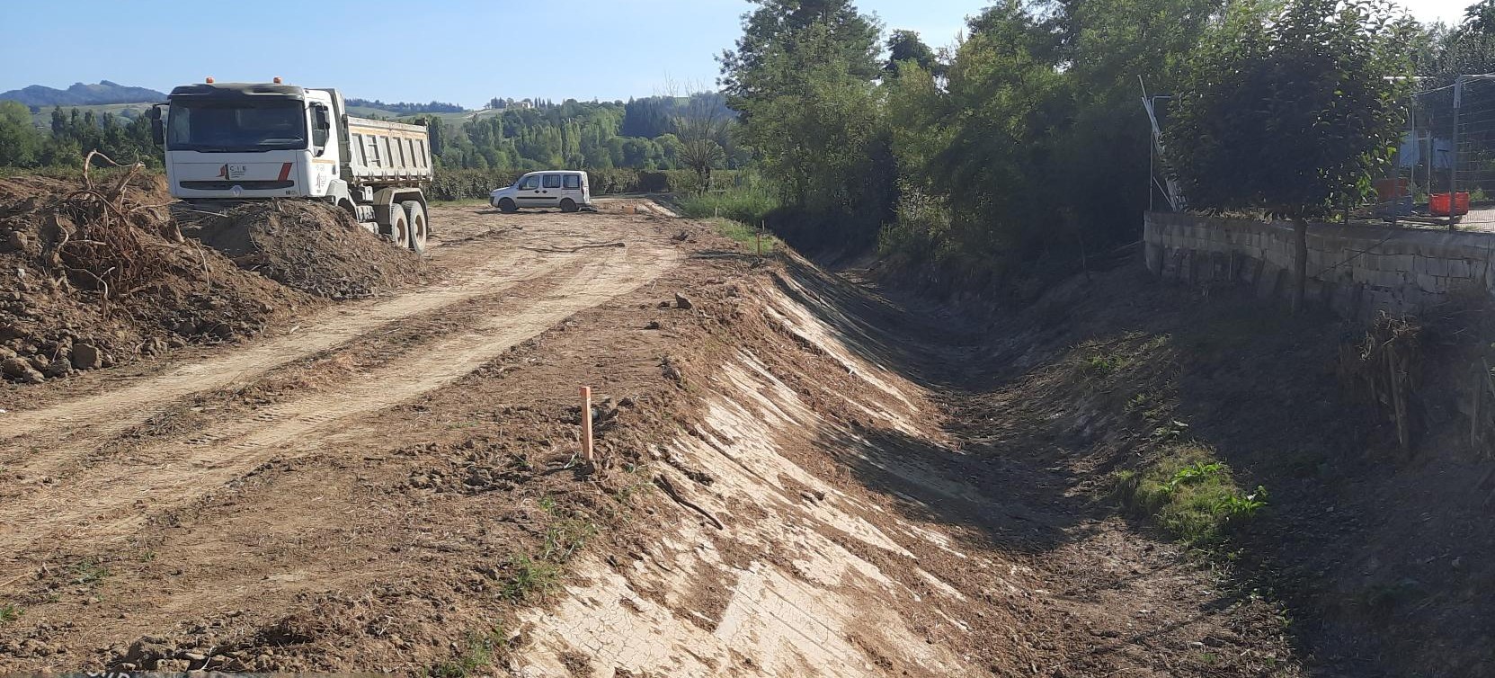 Il guado necessario per il trasporto del materiale terroso è stato posato il 25 settembre, mentre nei prossimi giorni si procederà al completamento delle rampe di accesso, all’ampliamento della banchina stradale di via Matilde di Canossa e alla preparazione delle aree di collocazione delle terre. Il trasporto di queste ultime (circa 10mila metri cubi) al sito di destinazione è previsto entro la fine di ottobre.