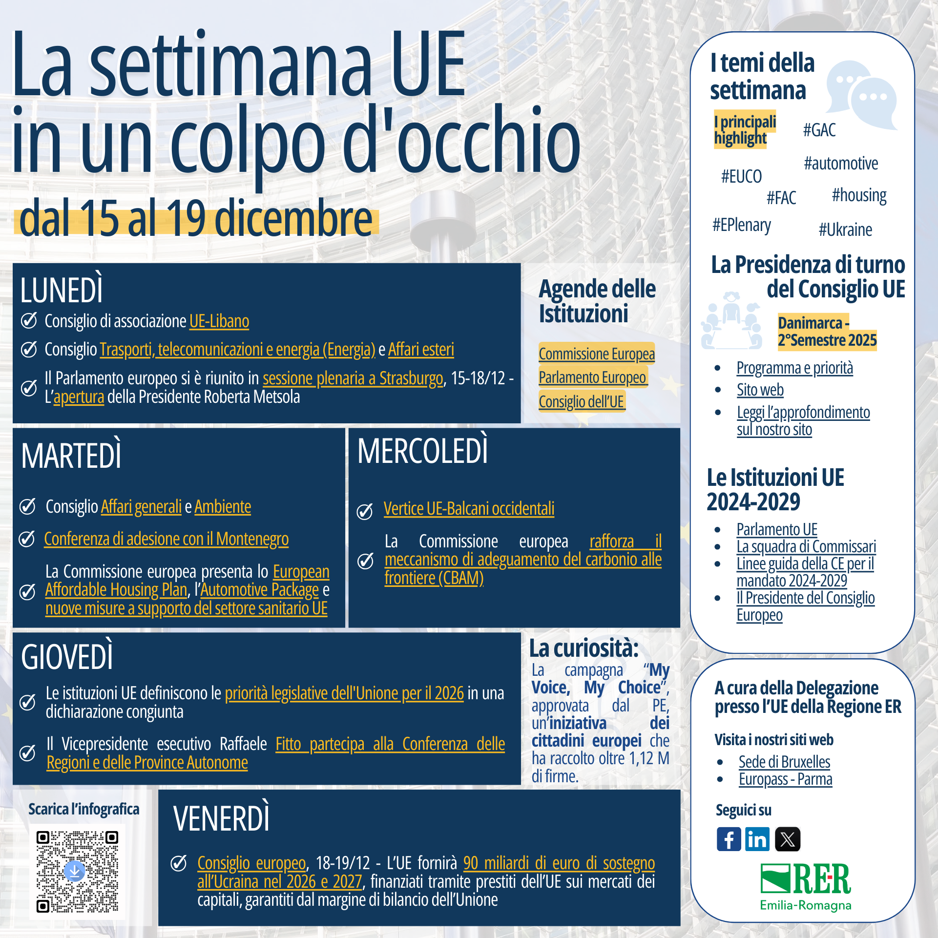 Scarica l'infografica sulla settimana UE dal 15 al 19 dicembre 2025