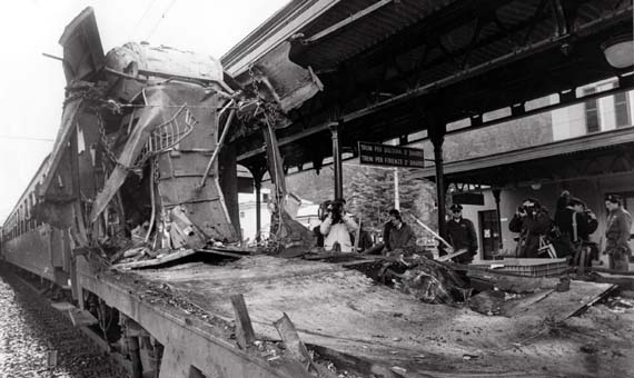 24 dicembre 1984: la nona carrozza di seconda classe del rapido 904 squarciata dall'esplosione. Archivio Umberto Gaggioli - ANSA